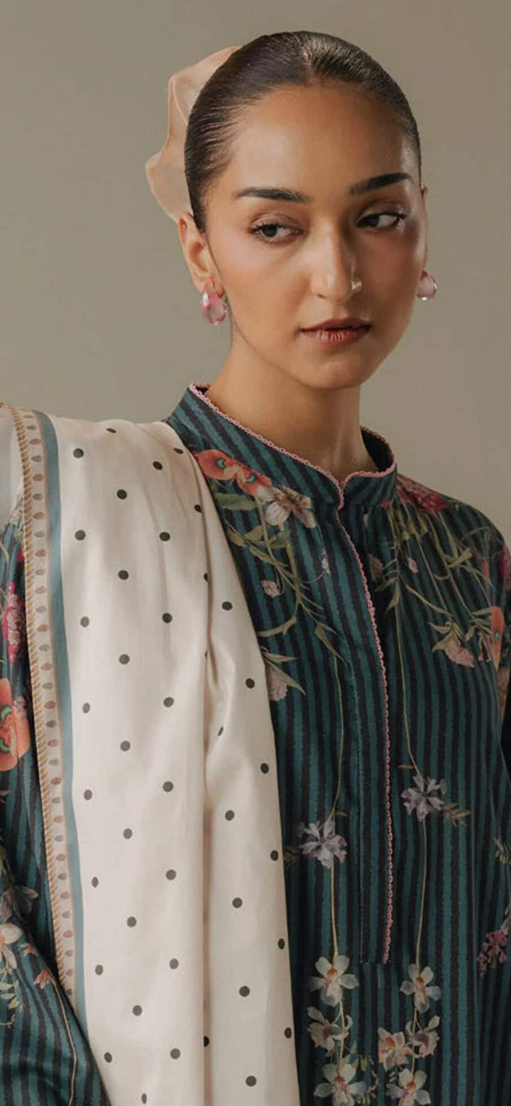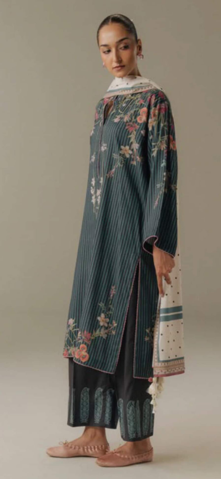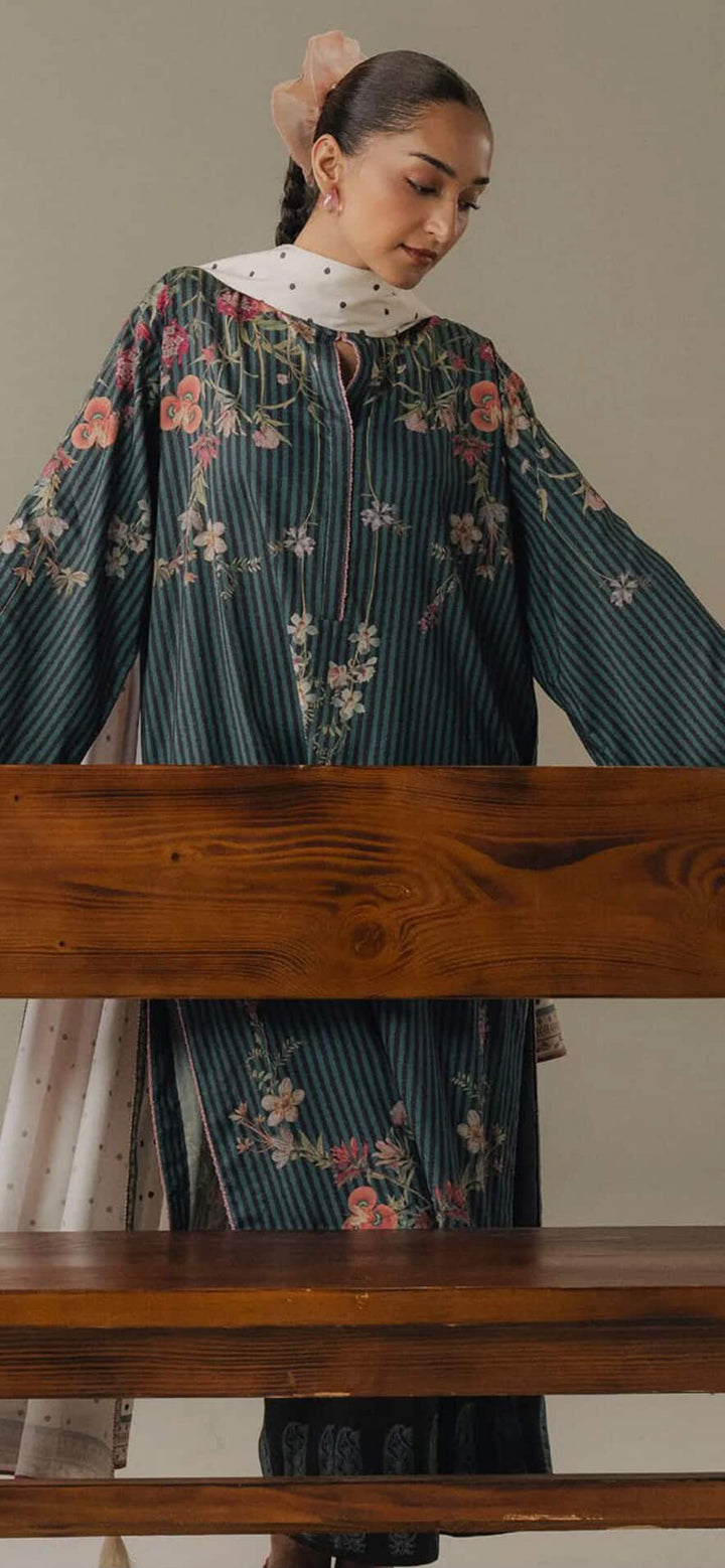 Make every winter day a statement with this stunning Teal Digital Printed Linen 3-Piece Suit.