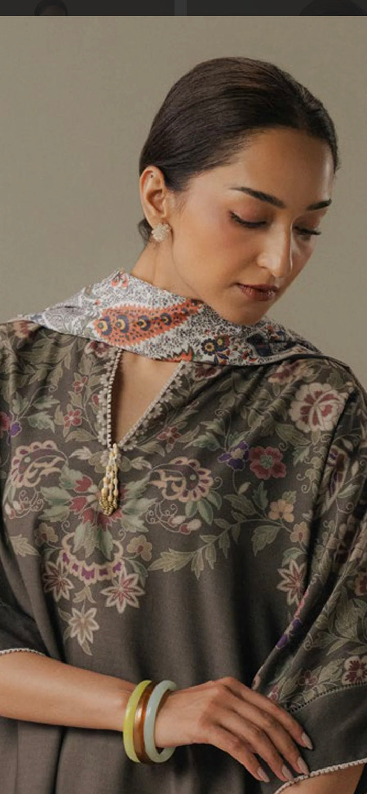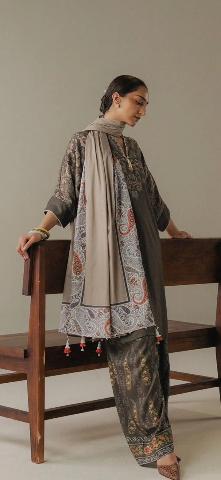 Step into the season with elegance — this Digital Printed Linen 3-Piece Suit from the Autumn Line brings the perfect blend of soft grey tones and winter charm. A timeless look for every occasion.