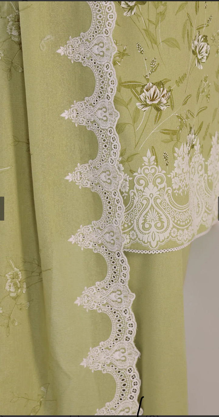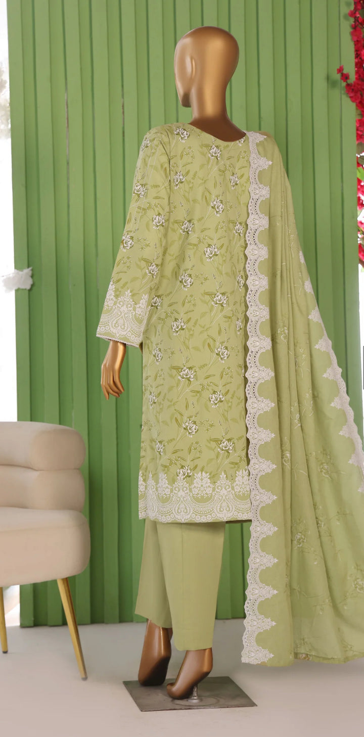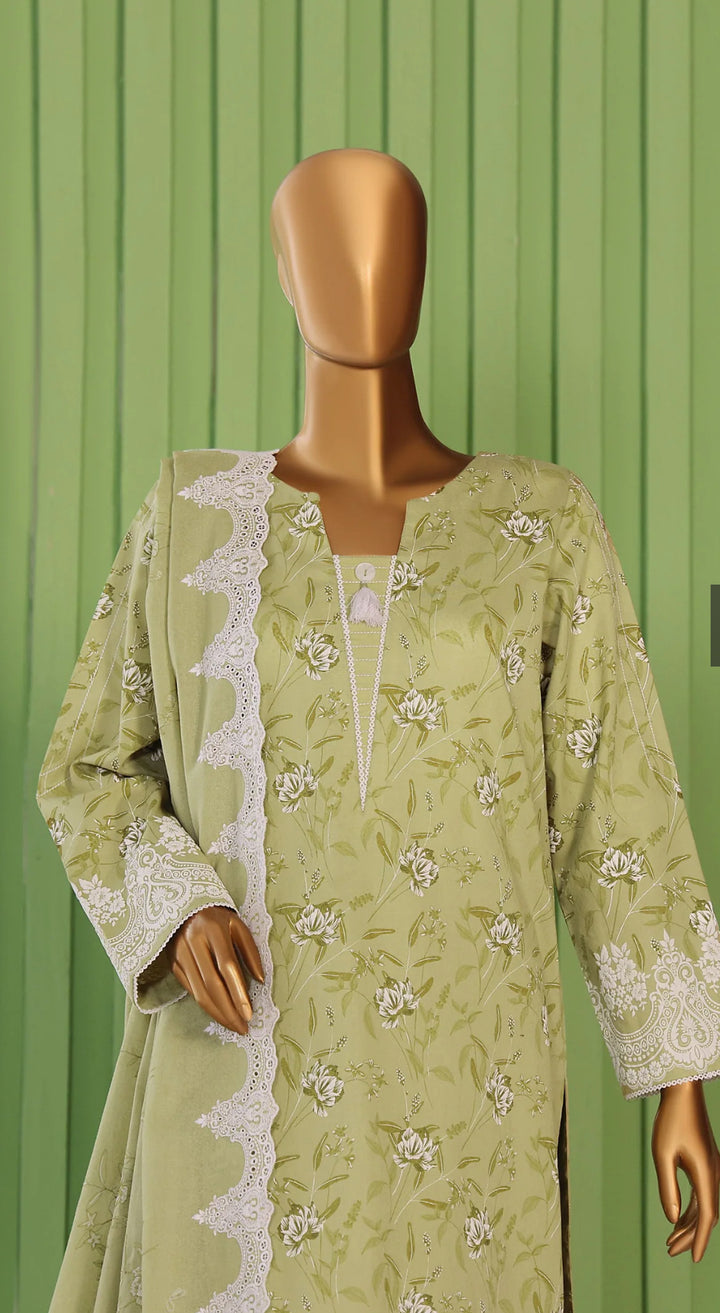 Embroidered Cotton Karandi Unstitched 3 Piece Suit - LKE-106 - HZ25LBSK - Olive Mist - Winter Collection