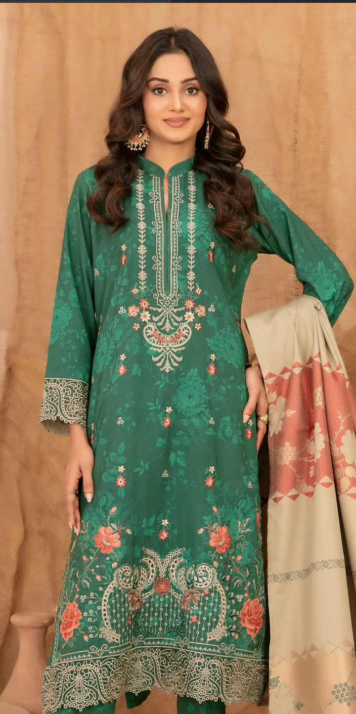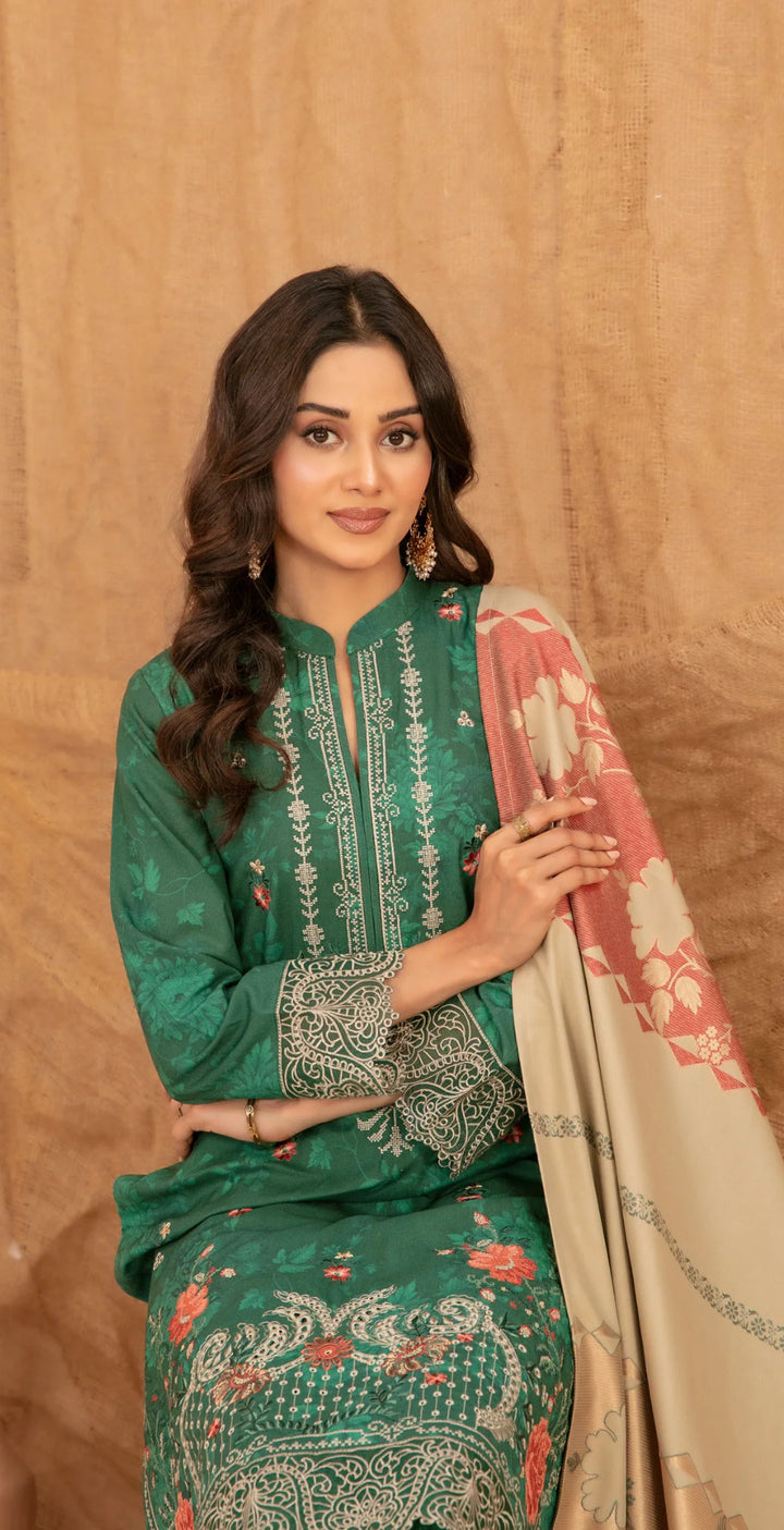 Embroidered Dhanak Unstitched 3 Piece Suit - D-5396 - TF25CASA - Green - Winter Collection