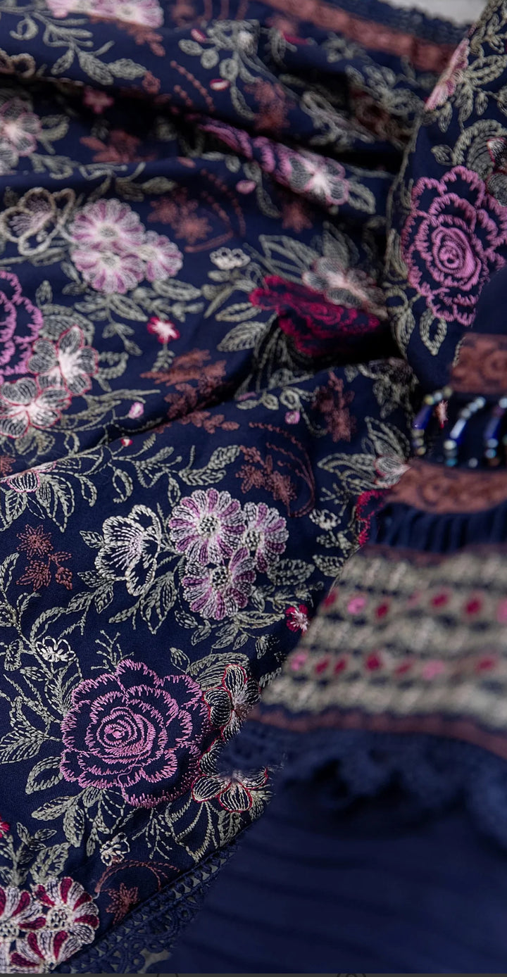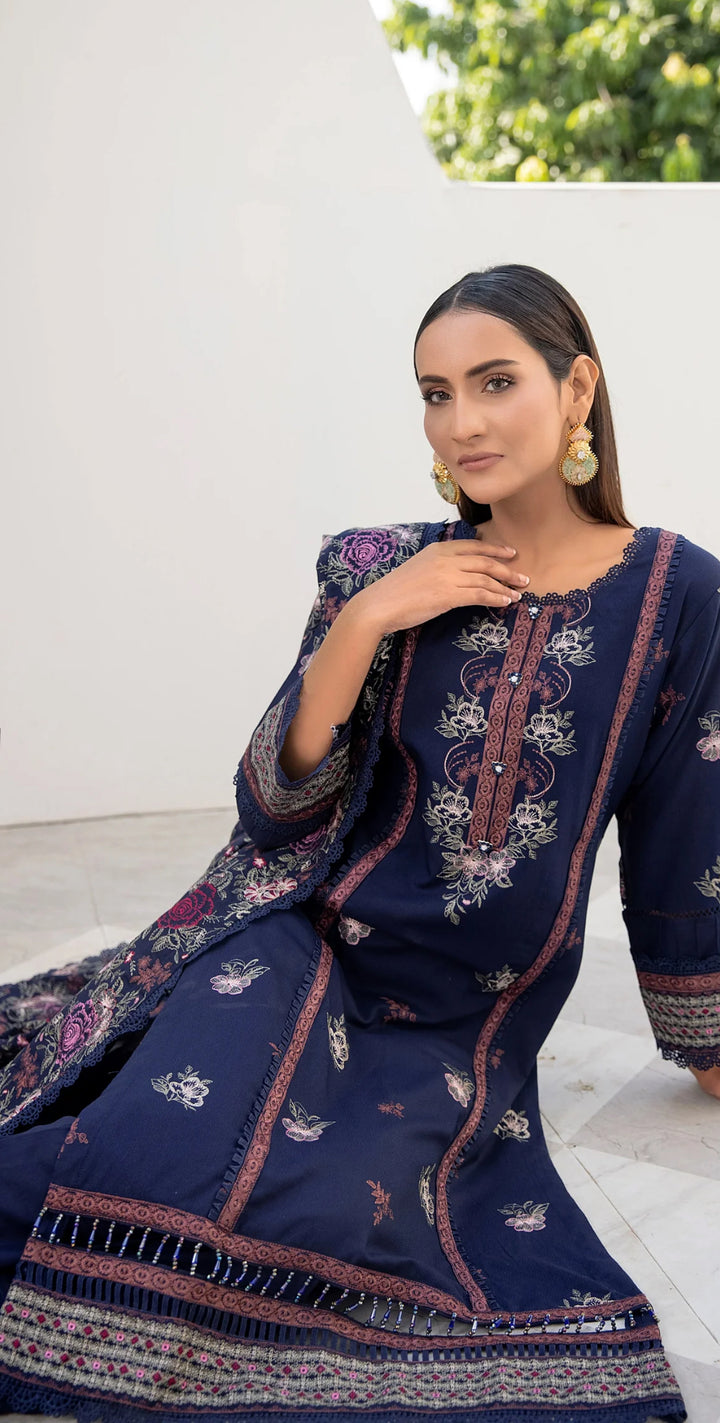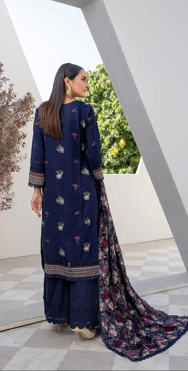 Embroidered Dhanak Unstitched 3 Piece Suit - D23103 - TNW25WD - Navy Blue - Winter Collection