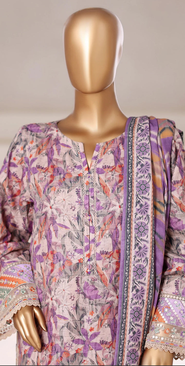 Embroidered Khaddar Stitched 3 Piece Suit - Design-01 - SBD252KA - Purple - Winter Collection