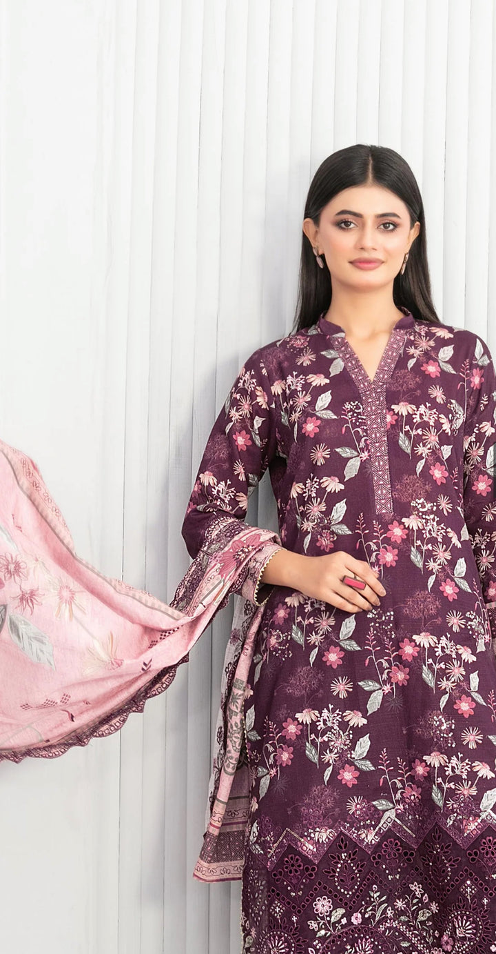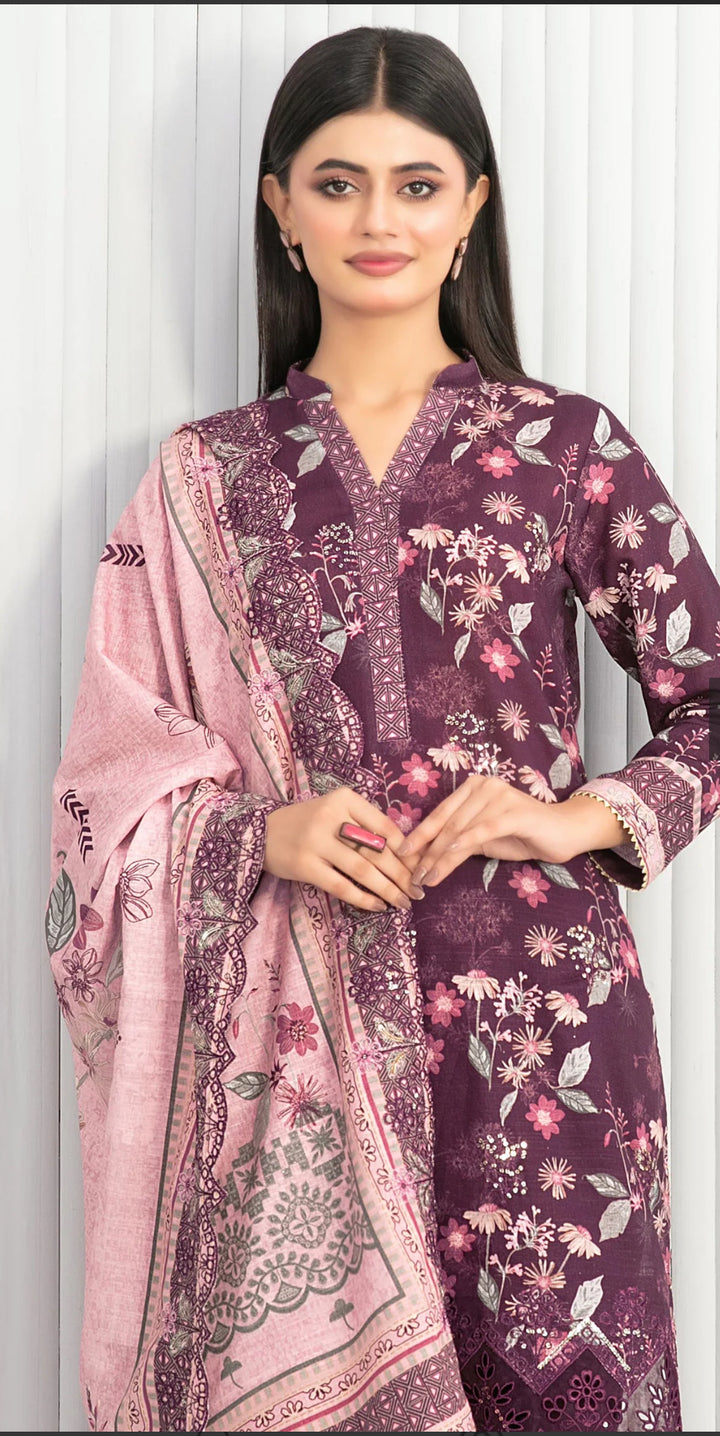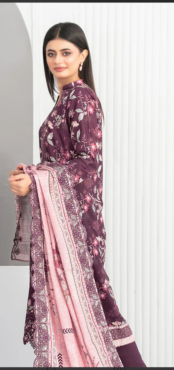 Embroidered Khaddar Unstitched 3 Piece Suit - D-4773 - TF25MDEA - Purple - Winter Collection