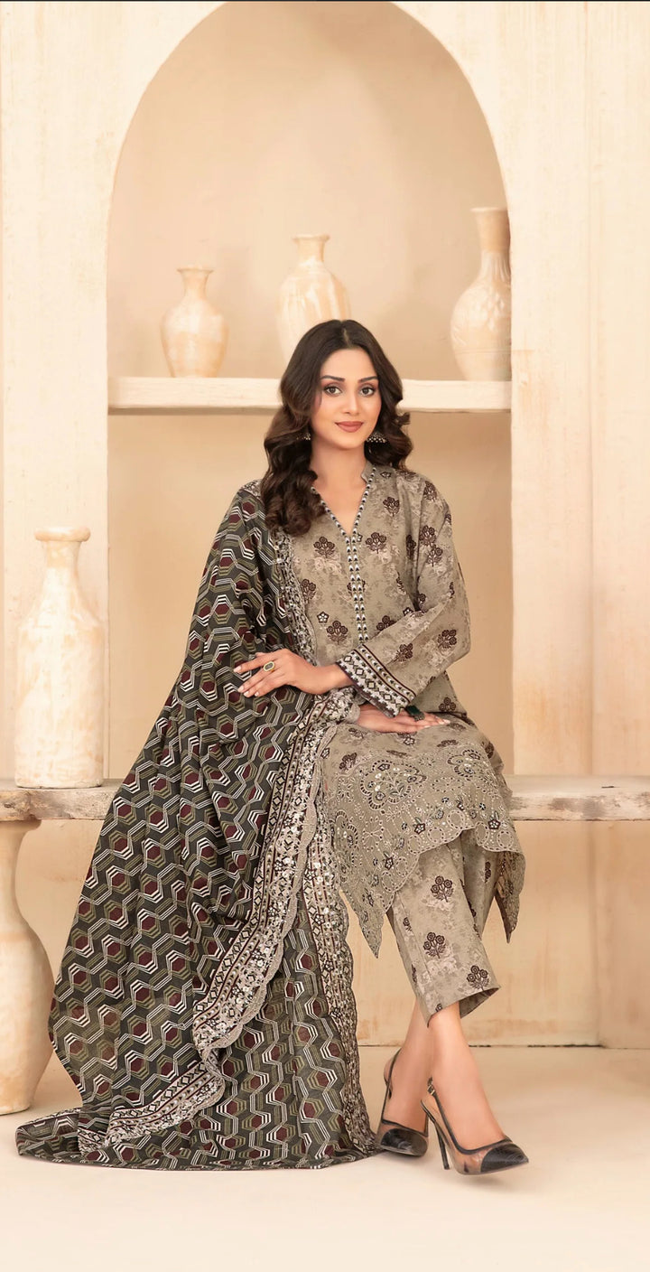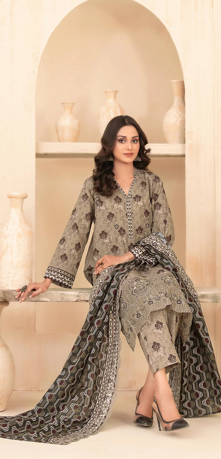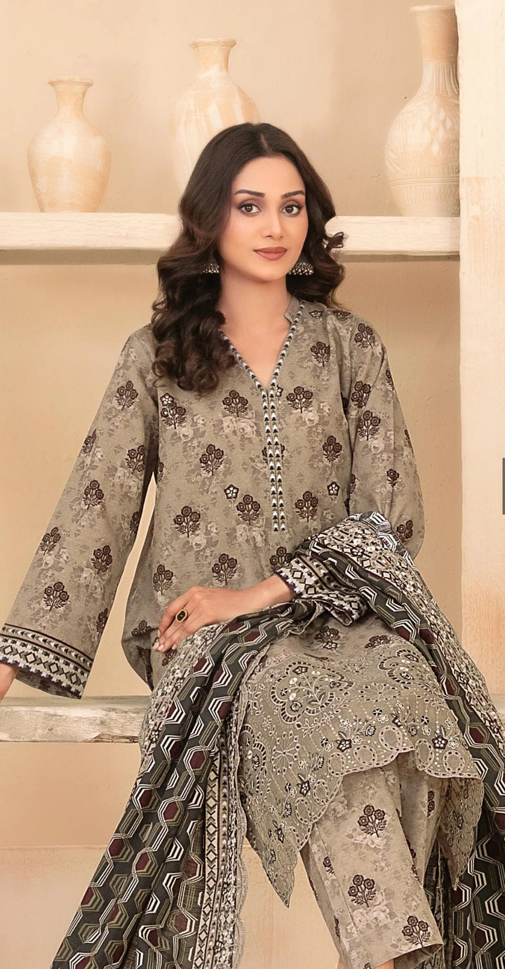 Embroidered Khaddar Unstitched 3 Piece Suit - D-5092 - TF25MESH - Brown - Winter Collection