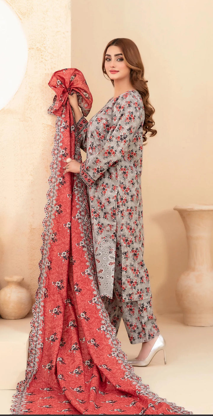 Embroidered Khaddar Unstitched 3 Piece Suit - D-5099 - TF25MESH - Grey - Winter Collection