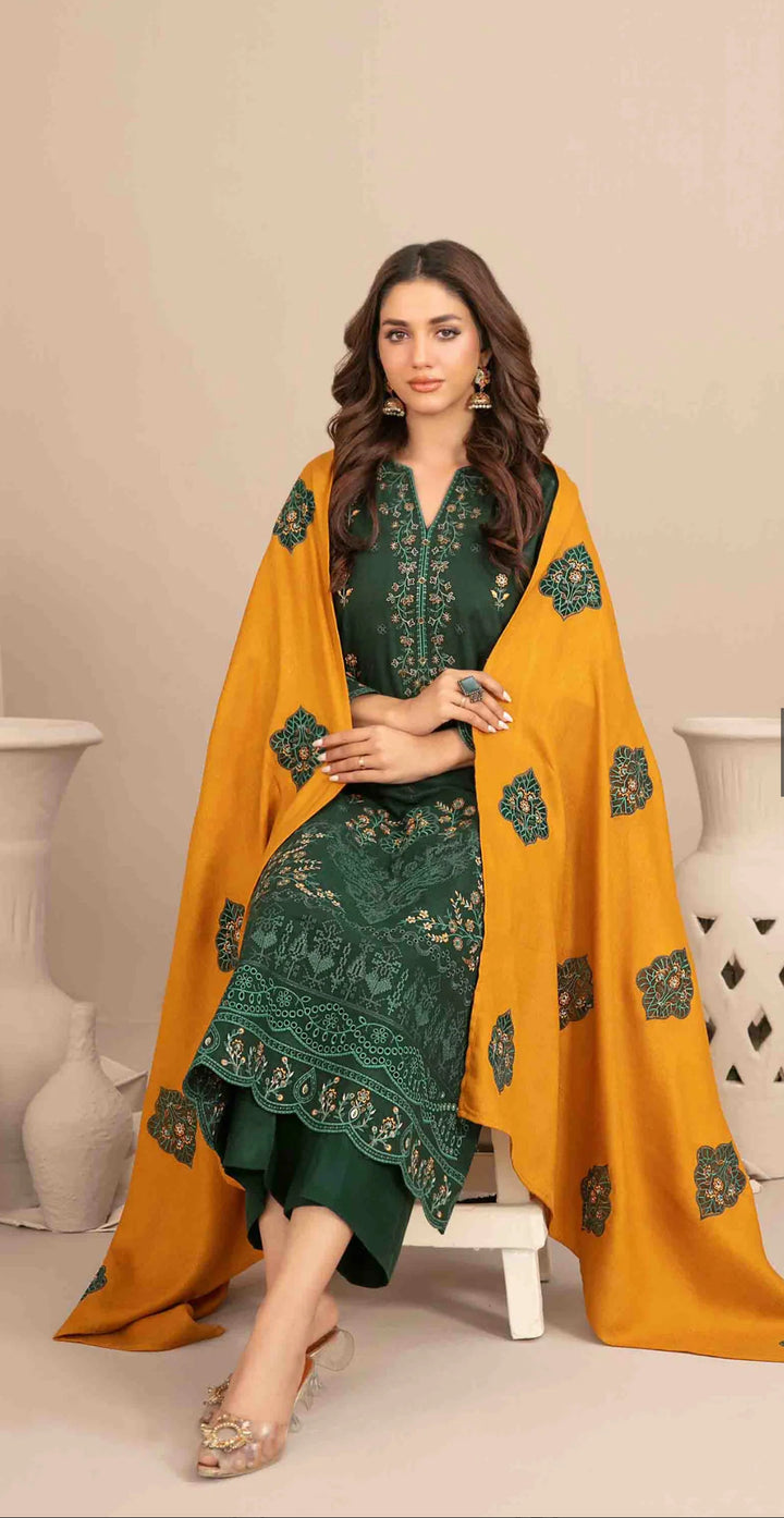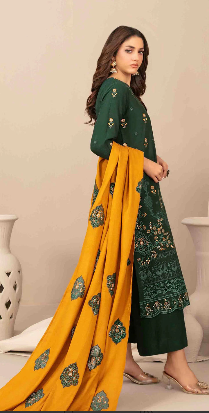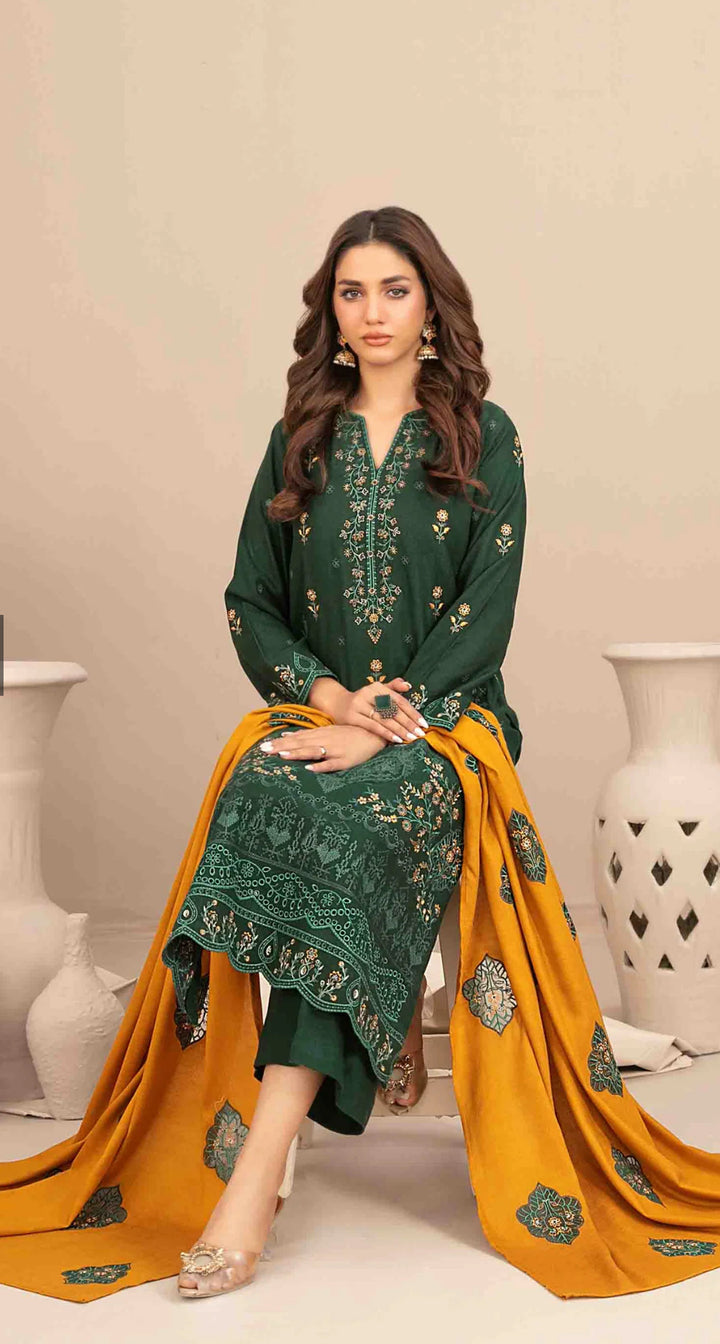 Embroidered Leather Peach Unstitched 3 Piece Suit - D-5684 - TF25SWN - Green - Winter Collection