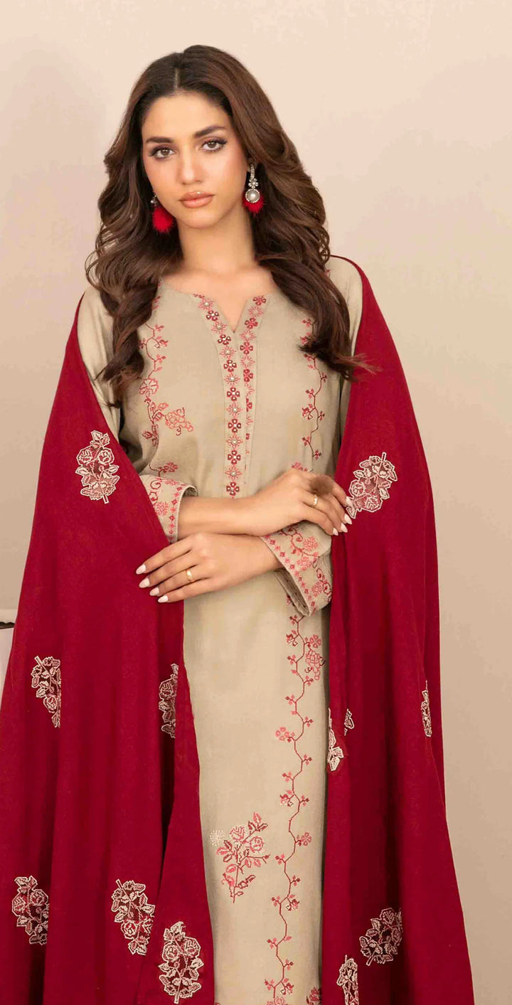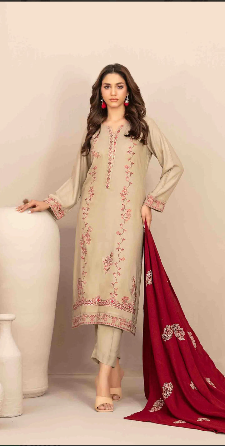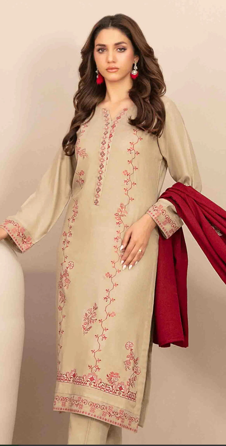 Fancy Embroidered Leather Peach Unstitched 3 Piece Suit