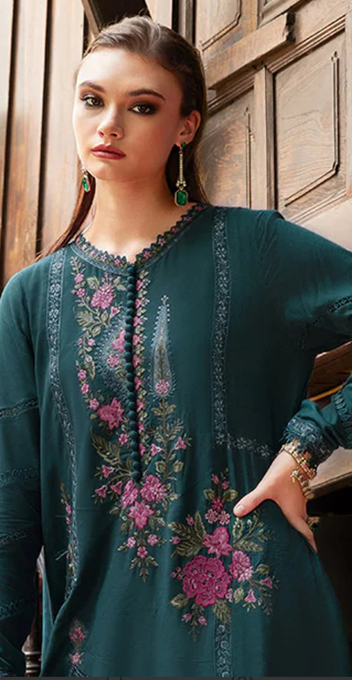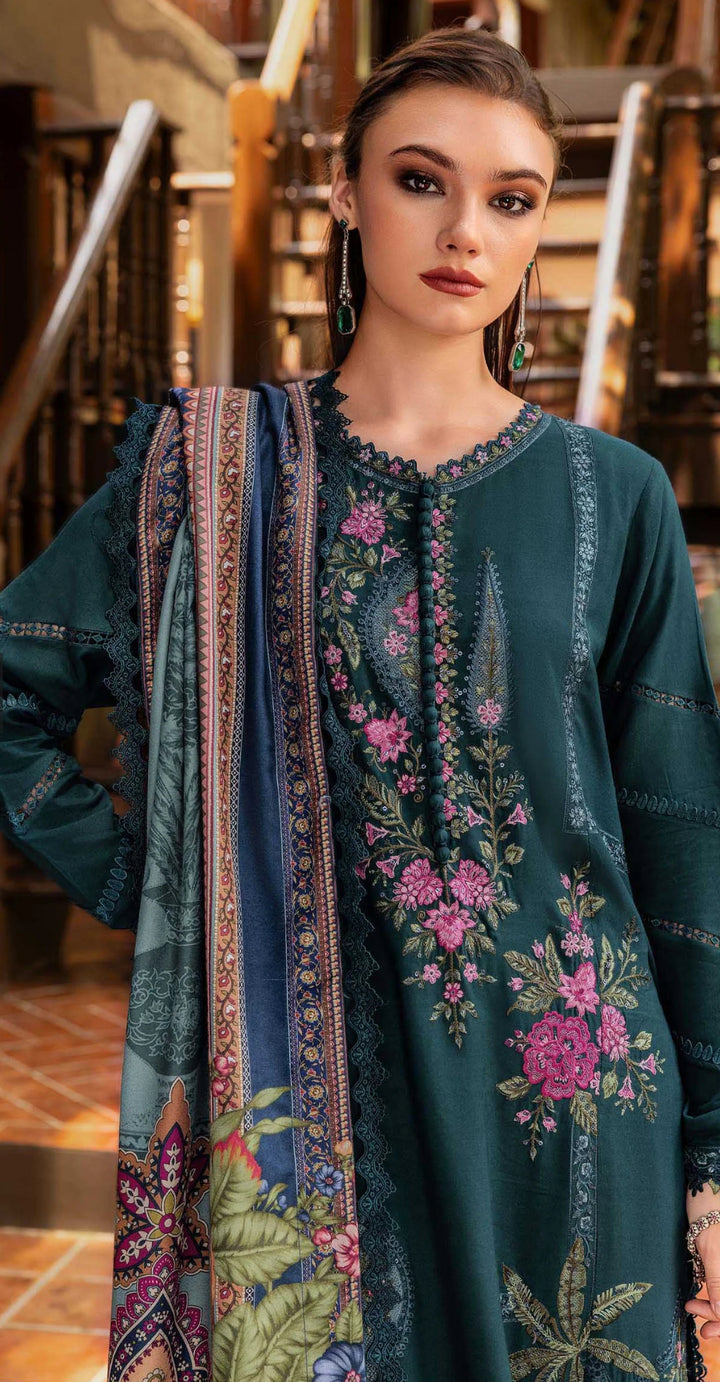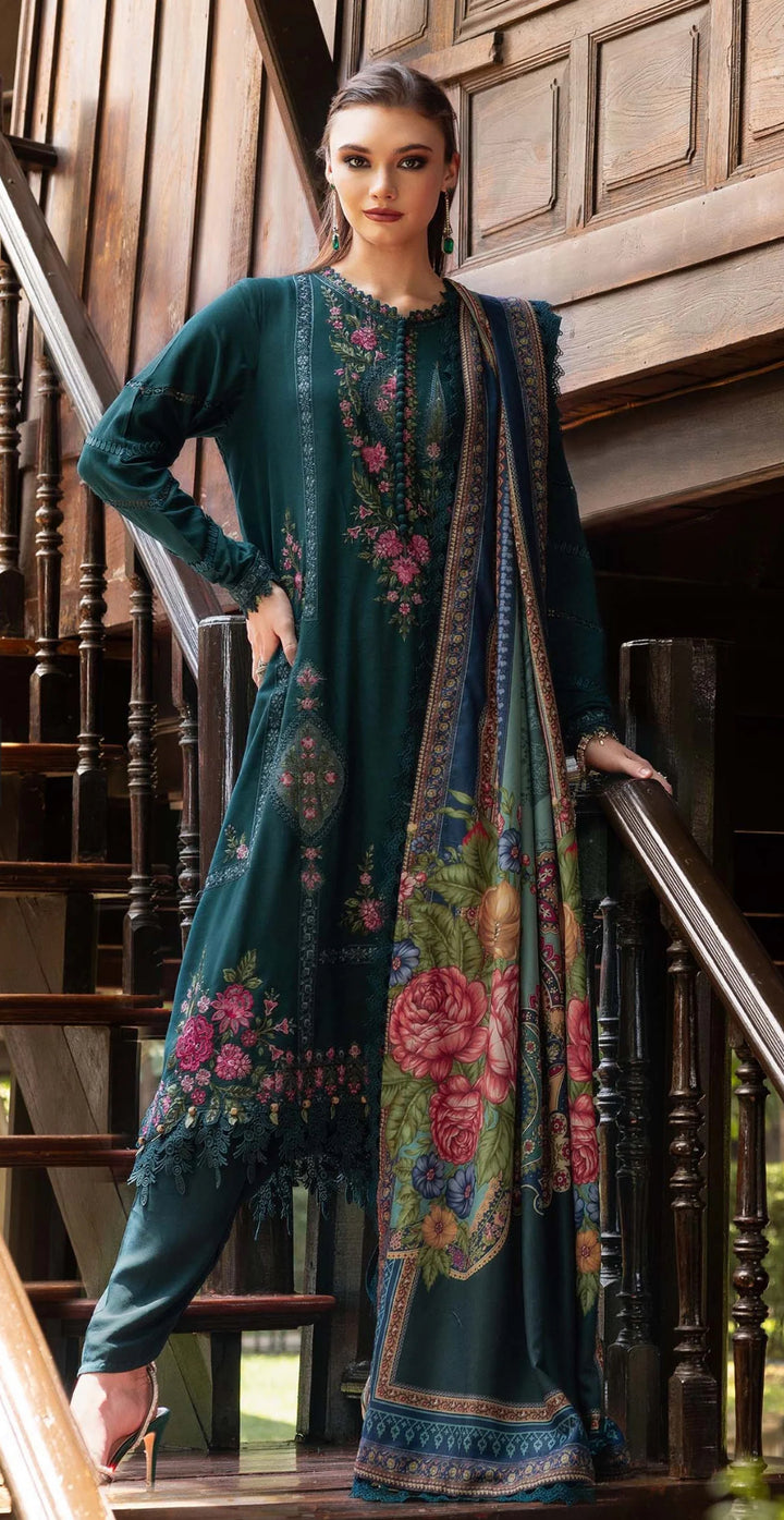 Embroidered Twill Linen Unstitched 3 Piece Suit - D-7B - MB25PNW - Teal - Winter Collection