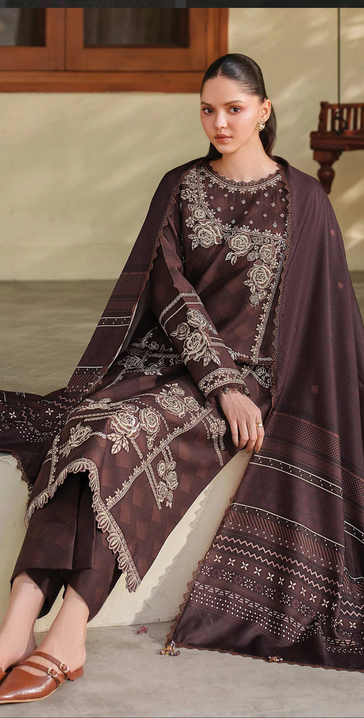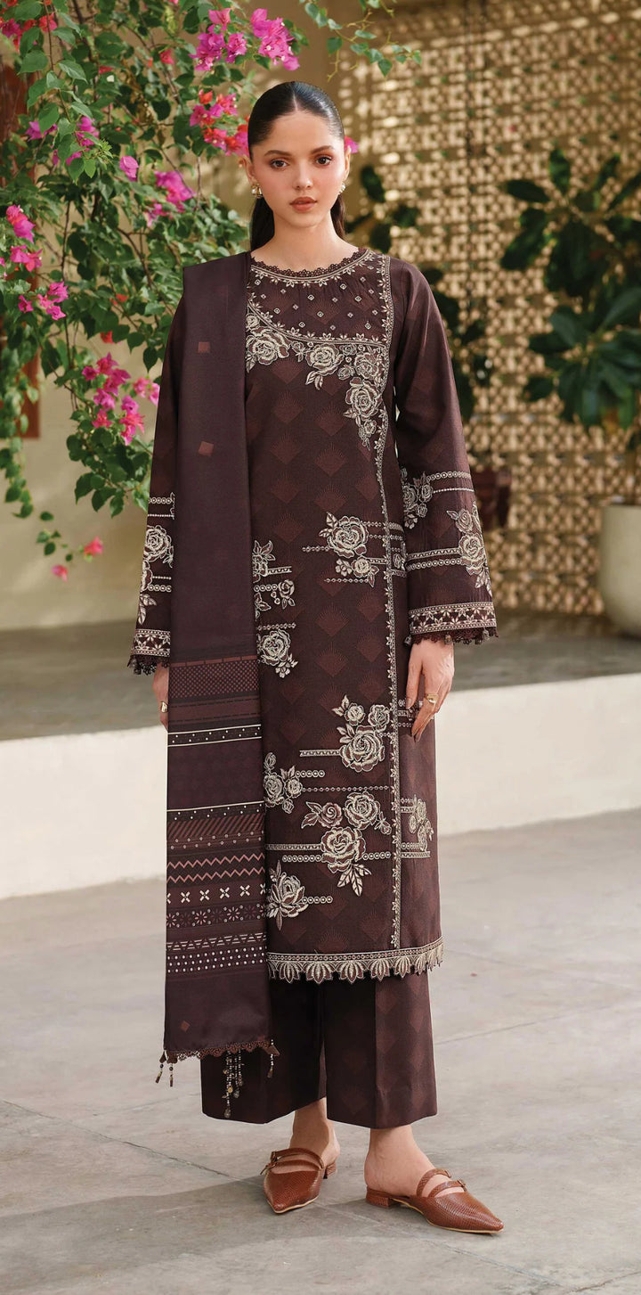 Embroidered Viscose Unstitched 3 Piece Suit - 09 Autumn Rose - FSH25MLN - Brown - Luxury Winter