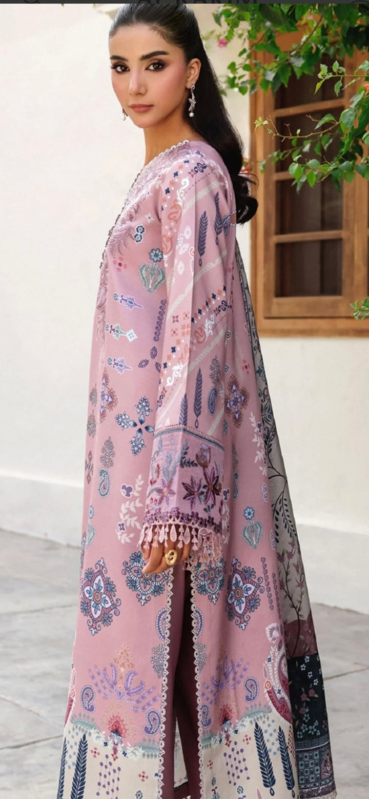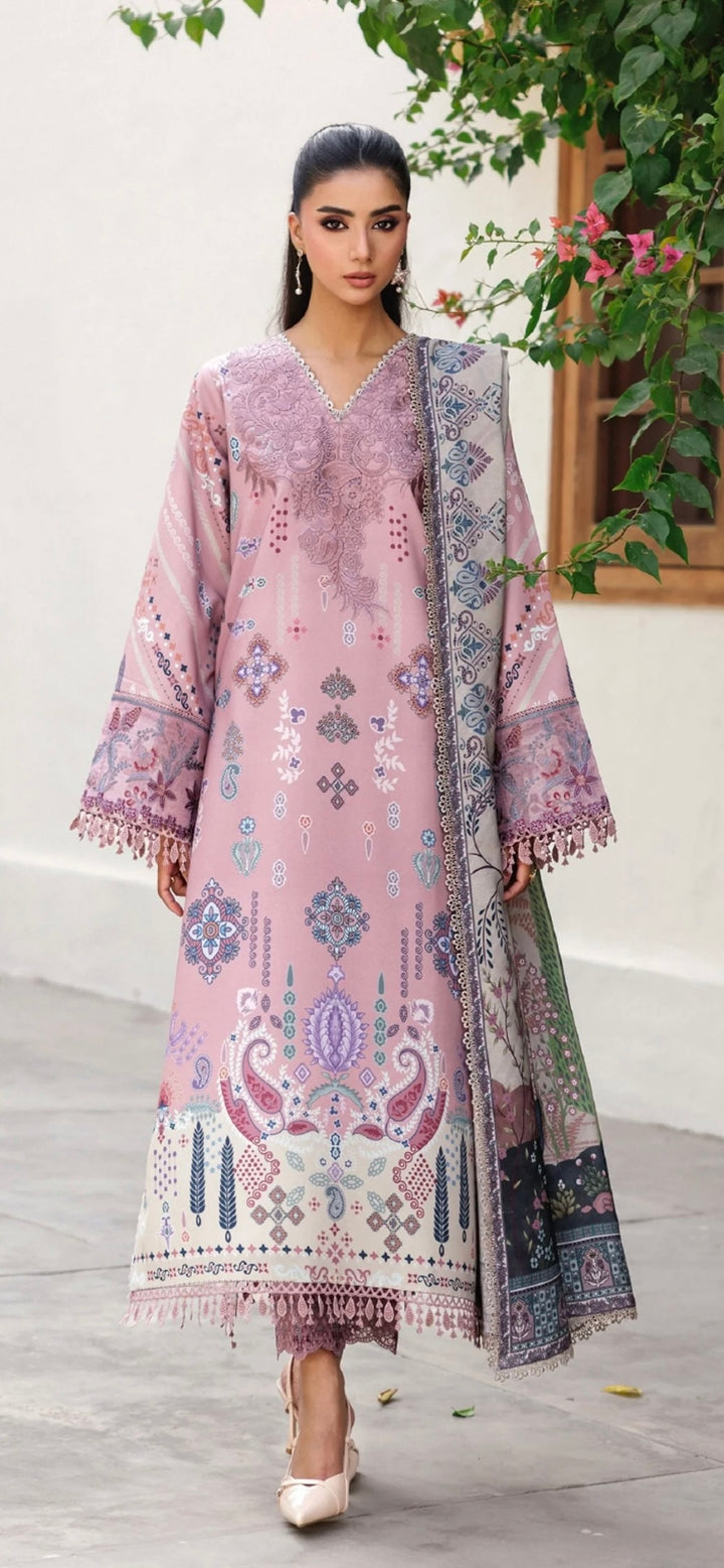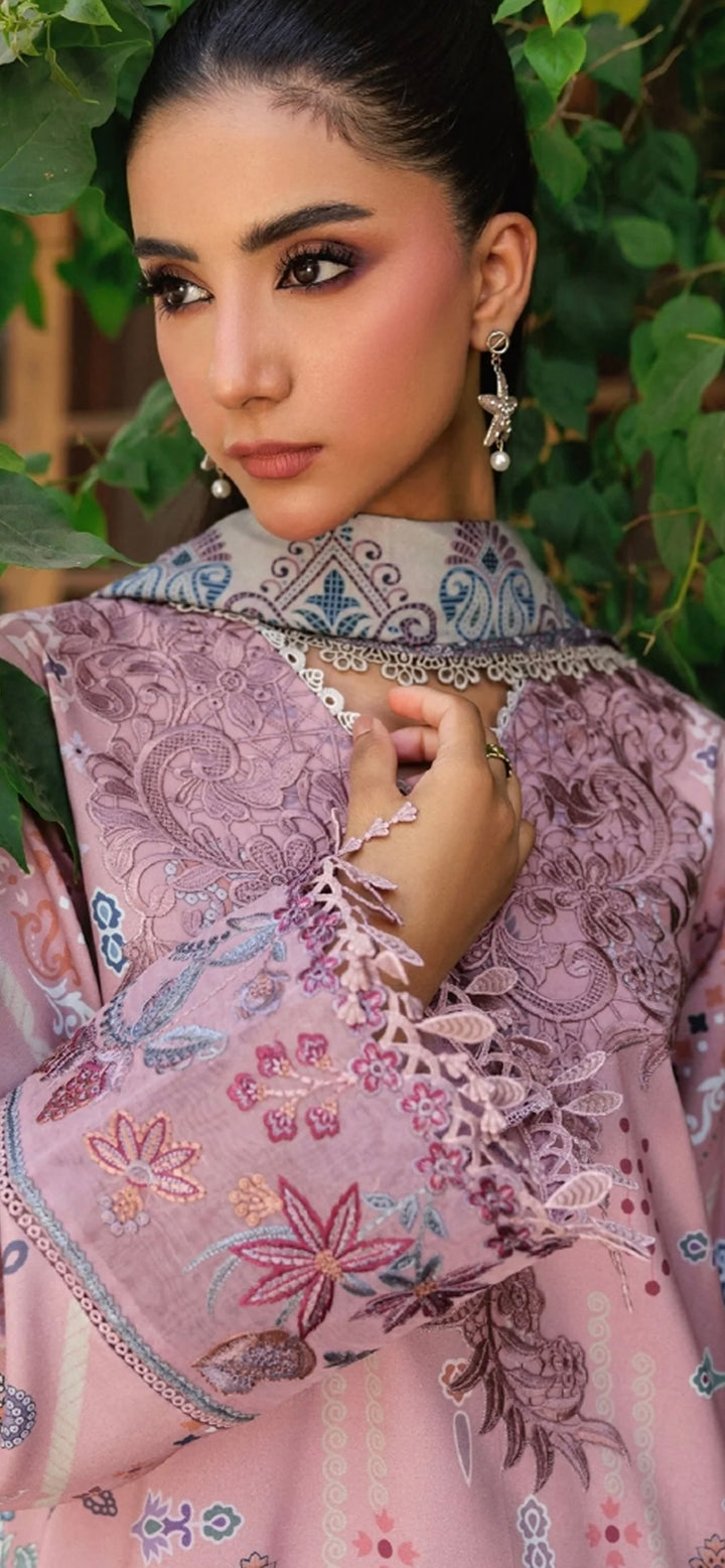 Embroidered Winter Fabric Unstitched 3 Piece Suit - FL-5A - FL25WW - Pink - Winter Whispers Collection