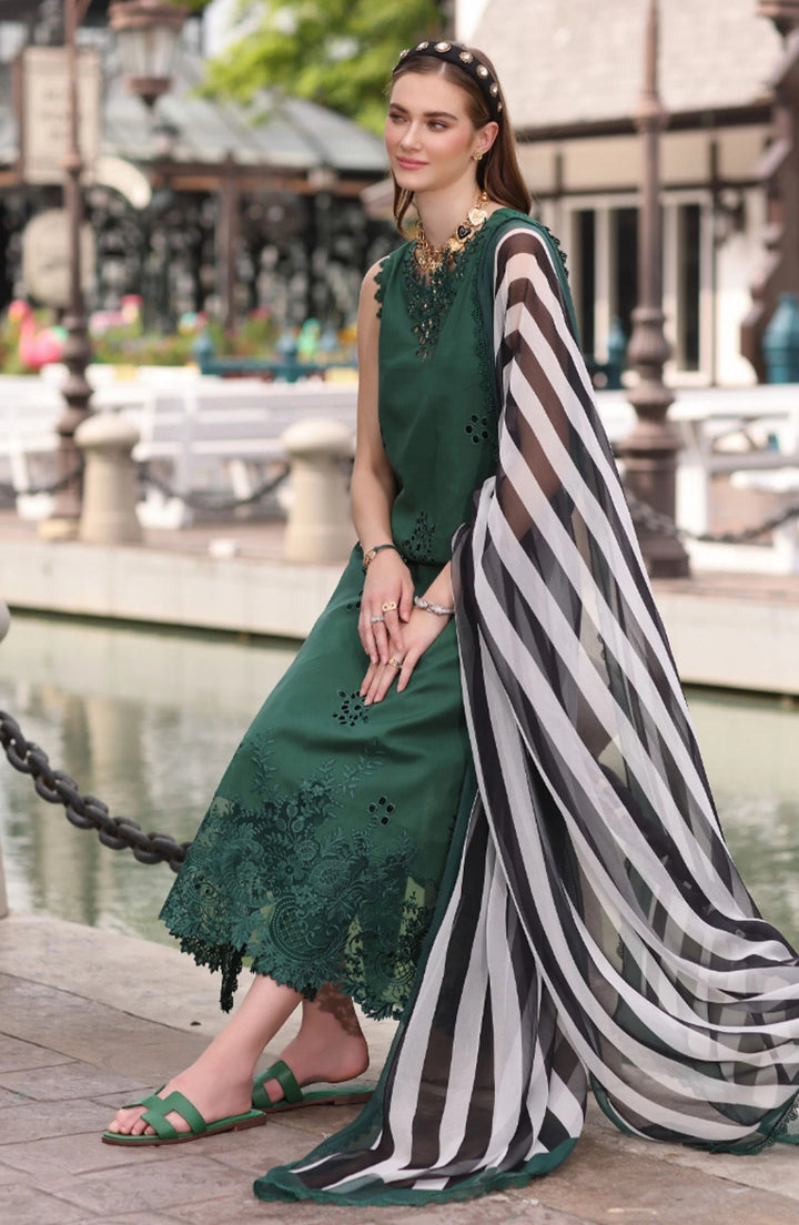 Noor by Saadia Asad Embroidered Lawn Chikankari 3-Piece Suit – a special edition designed for women who value elegance and craftsmanship. This green ensemble features exquisite chikankari and schiffli embroidery, paired with premium lawn and chiffon fabrics for a refined festive look.