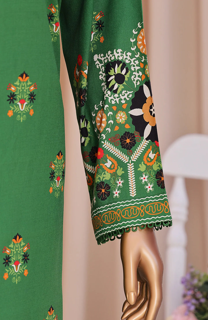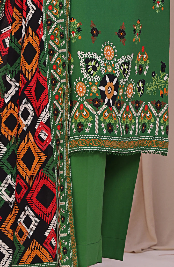 Product: Digital Printed Linen Slub Unstitched 3-Piece Suit – LSD-301 (Green)