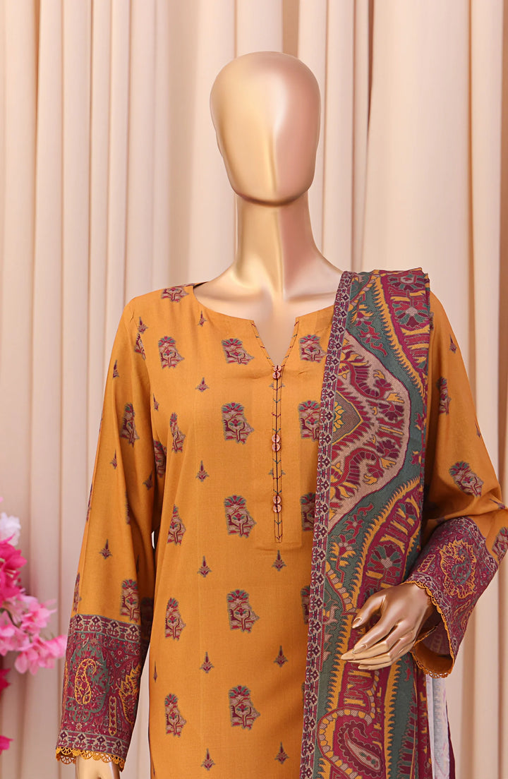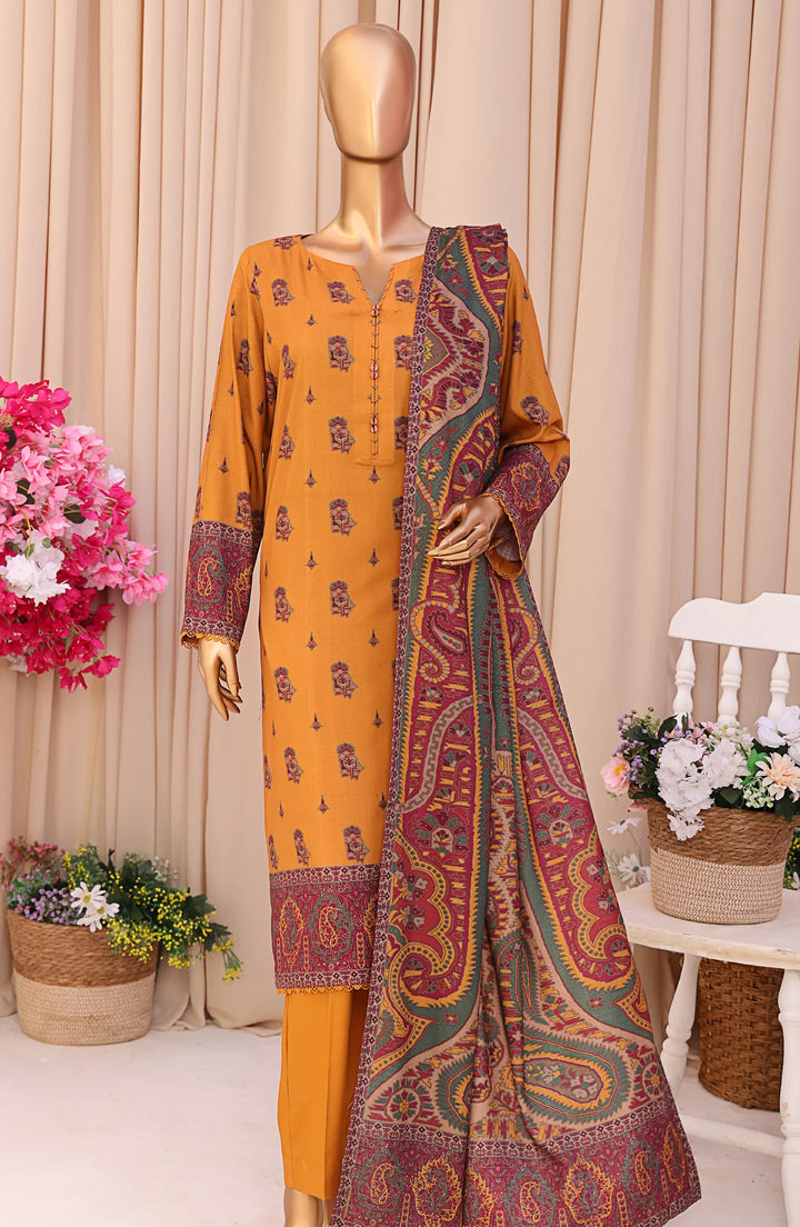 Digital Printed Linen Slub 3-Piece Suit in Mustard (LSD-309)
