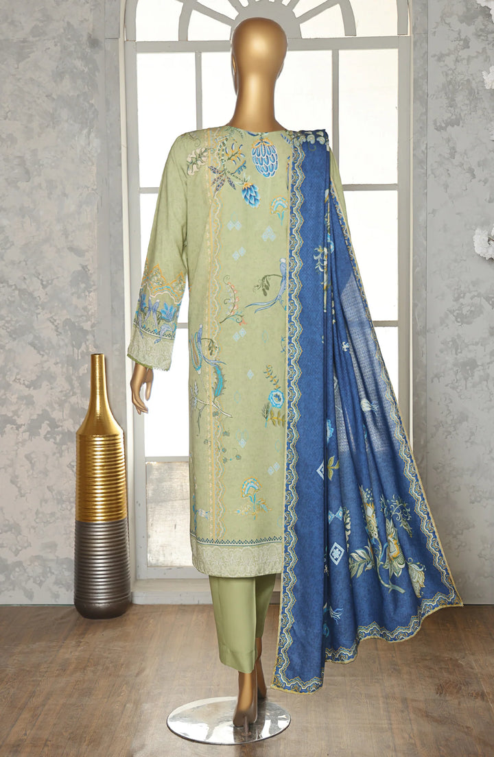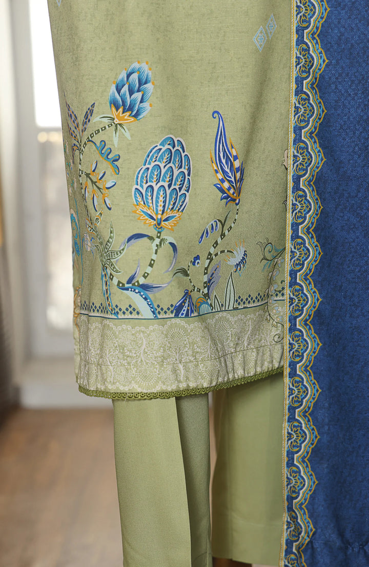 Stay effortlessly stylish this winter with our Digital Printed Linen Slub 3-Piece Suit in Green (LSD-306).
