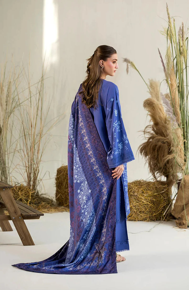 New! Embroidered Karandi 3-Piece Unstitched Suit – Design 1B (SN25WN) – Blue ❄️