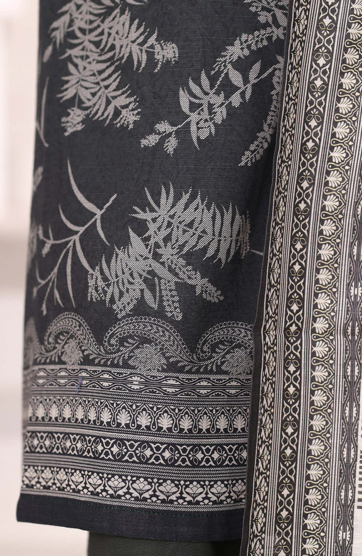 Step into the season with grace and style wearing our Printed Khaddar Stitched 3 Piece Suit – (Black).