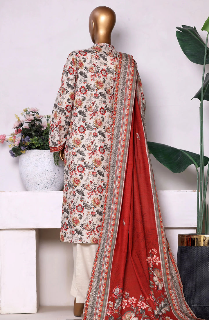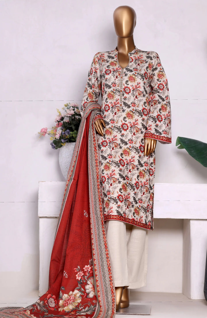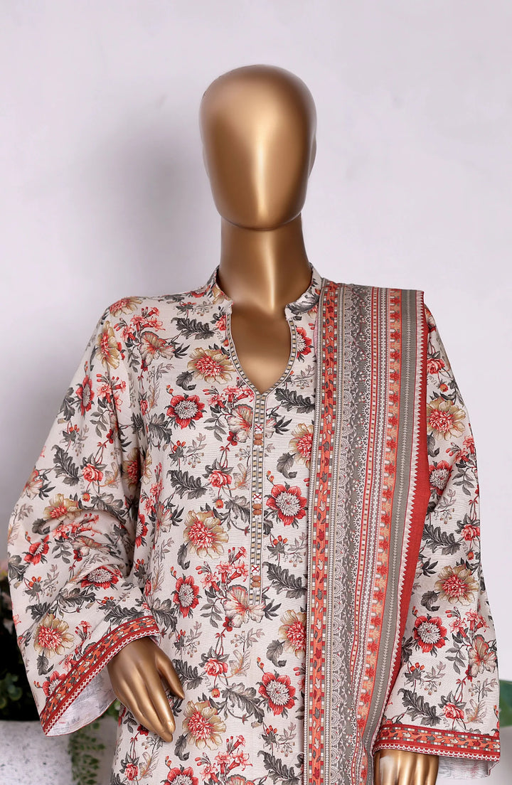 A refined winter essential crafted in premium printed khaddar. This stitched 3-piece suit features an elegant off-white palette, soft winter fabric, and a ready-to-wear fit—perfect for everyday style and comfort.